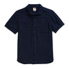 Camisa de manga corta de corte estándar, con bolsillo en el lado izquierdo del pecho para guardar pequeños objetos esenciales, cierre de botón frontal central completo con cuello. Pliegue trasero y etiqueta con logo en la costura lateral izquierda. Elaborada con tejido 70% algodón / 30% cáñamo.