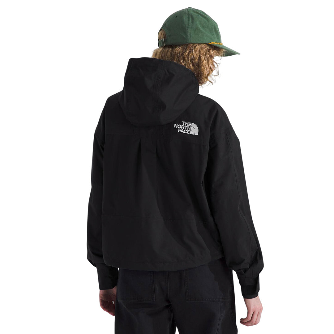 La chaqueta tiene ajuste relajado y está confeccionada con tejido DryVent™ 2L de poliéster reciclado, impermeable, transpirable y con acabado DWR sin PFC. Incorpora capucha ajustable, solapa contra tormenta con broches que cubre el cierre frontal YKK® VISLON®, bolsillos con cremallera, diseño icónico en bloques de color y dobladillo trasero extendido para mayor cobertura.
