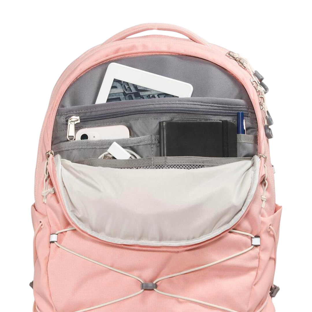Nuestra clásica mochila Borealis es un básico en el campus y en los senderos. Diseñada con un sistema de almacenamiento externo con cuerdas elásticas, un compartimento protector para el portátil y una organización interna simplificada, esta mochila puede llevarte a cualquier parte. El sistema de suspensión FlexVent™, certificado por la Asociación Americana de Quiropráctica, cuenta con tirantes articulados, un panel trasero redondeado, cómodas líneas de costura y tejido de chemise suave al tacto. El sistema externo de compresión por cuerda con clips ofrece varias opciones de organización. Los cordones elásticos laterales permiten la compresión. Cuenta con compartimento protector específico para el portátil, otro compartimento principal para libros y carpetas. El compartimento frontal tiene organización interna con bolsillos de cremallera seguros y una funda acolchada para la tableta. Peso medio: 2 lbs 5 oz (1050 g). Dimensiones: 30,5 cm x 16,5 cm x 49,5 cm (12" x 6,5" x 19,5"). Volumen: 28 litros (1709 in³). Funda para portátil: 34,9 cm x 28,6 cm (13,75" x 11,25").