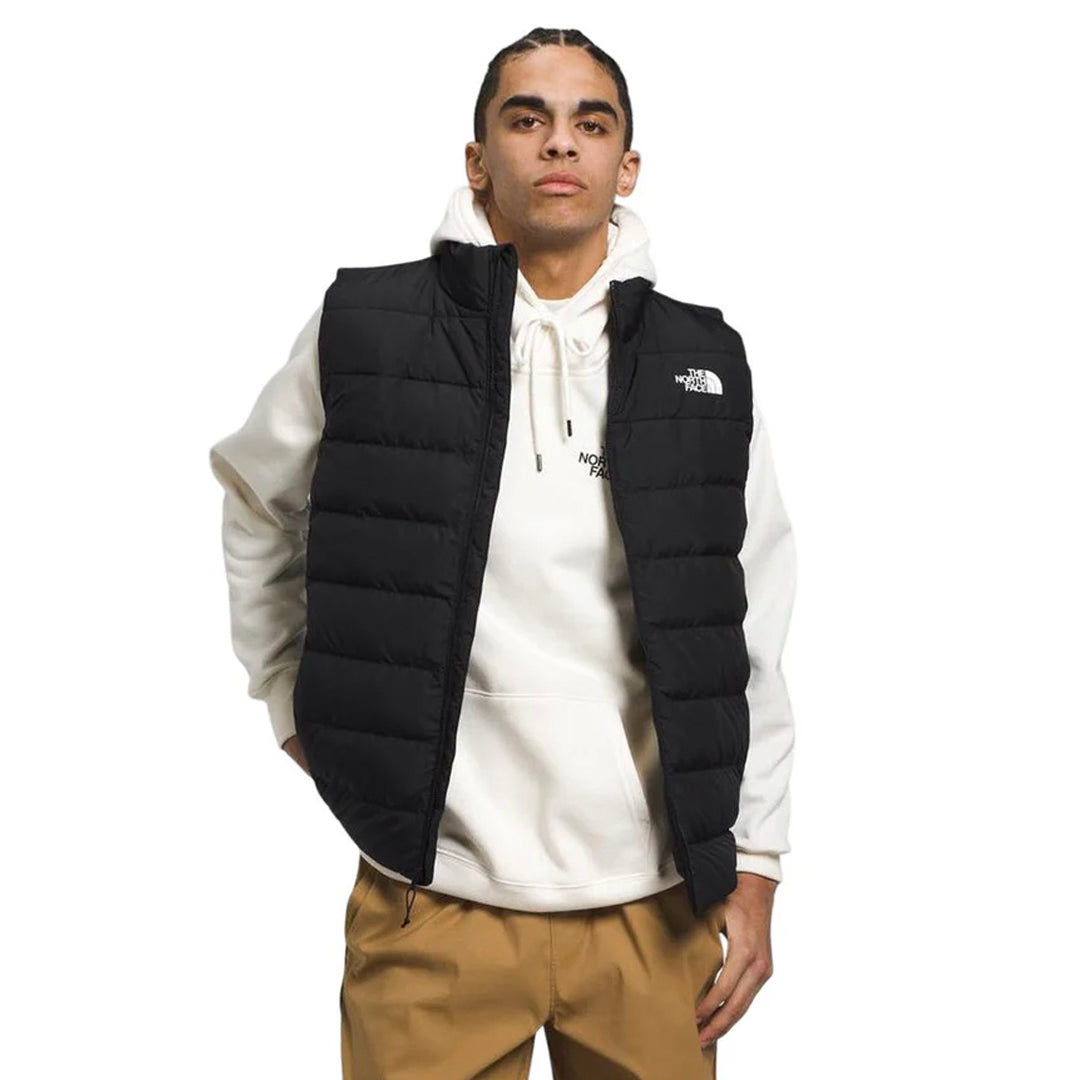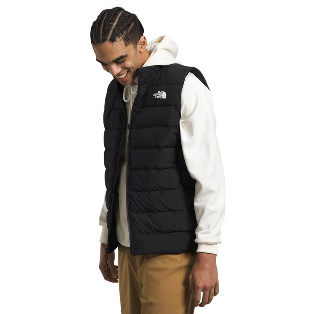 El chaleco Aconcagua para hombre favorita de los fanáticos para incluir tela corporal 100% reciclada, relleno 600 totalmente reciclado y aislamiento sintético. El chaleco Aconcagua 3 para hombre proporciona la calidez central que necesitas, con movilidad sin restricciones. Hecho de tela de poliéster 100% reciclado, este chaleco resistente al agua cuenta con un acabado duradero repelente al agua (DWR) para mayor protección contra los elementos. Con una forma favorecedora y amplia movilidad a través del pecho y los hombros, este chaleco se ajusta a la talla real para un movimiento fácil y cómodo y se puede llevar sobre capas medias.